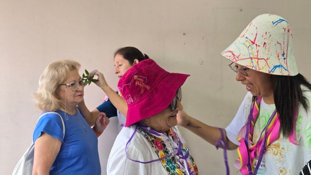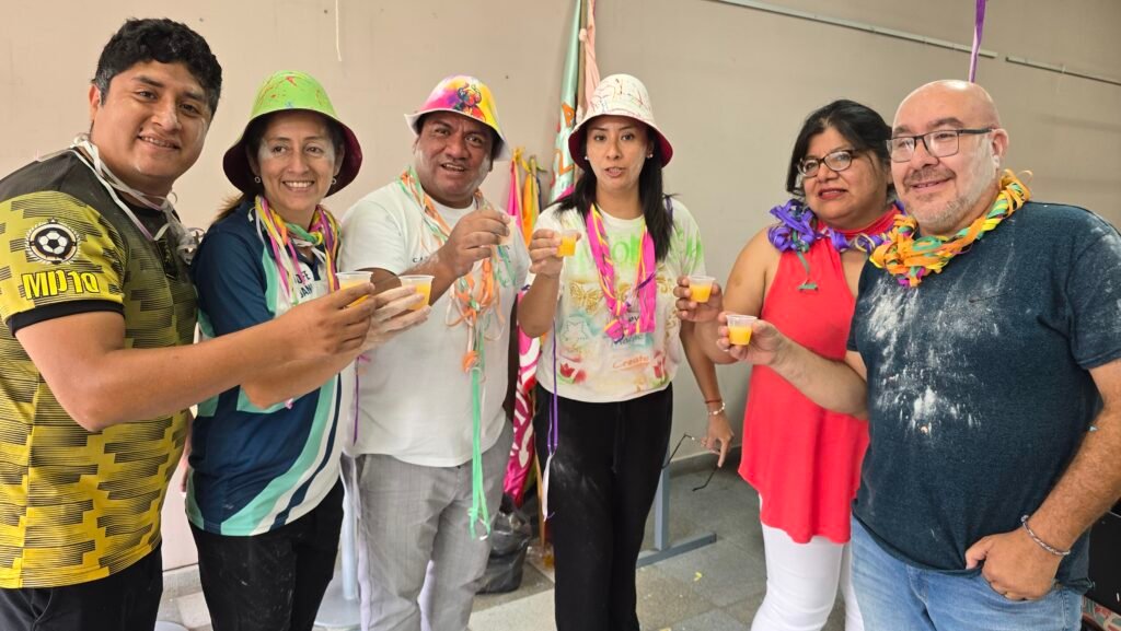 Desde temprano, el centro se transformó en un verdadero corazón carnavalero. Recibimos a cada uno con el aroma de la albahaca, el blanco del talco y nuestra clásica “vacuna” para entrar en clima. La modalidad a la canasta puso de manifiesto lo mejor de nosotros: el compartir y el disfrute en comunidad.